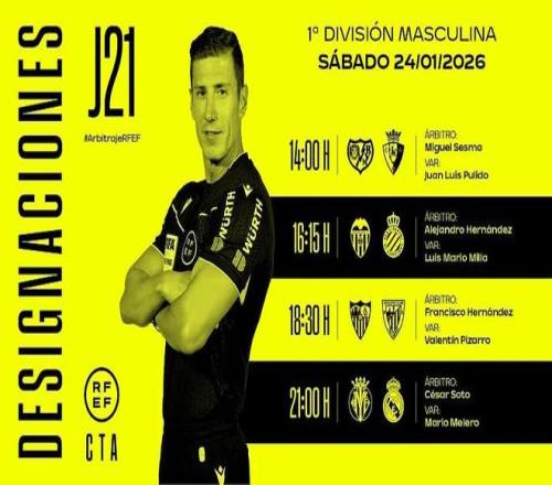 西班牙足協官方公布了周六西甲四場比賽的裁判安排,索托-格拉多將執法皇馬客場對陣比利亞雷亞爾。