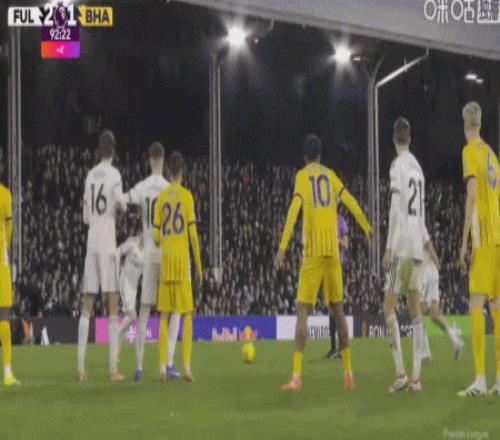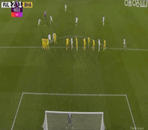 第90+2分鐘,哈里-威爾遜任意球直接破門,富勒姆2-1布萊頓