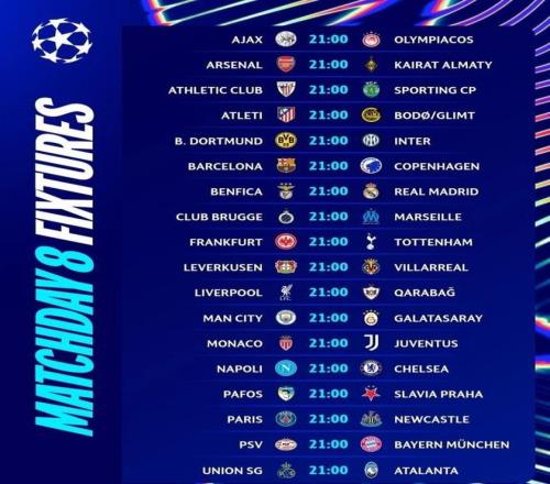 截至目前,僅有拜仁慕尼黑和阿森納鎖定總積分榜前八,直接晉級16強;而法蘭克福、凱拉特、布拉格斯拉維亞和比利亞雷亞爾則已確定無緣淘汰賽階段。這六支球隊在末輪基本無欲無求,最多只為歐足聯提供的單場贏球獎金拼一把。