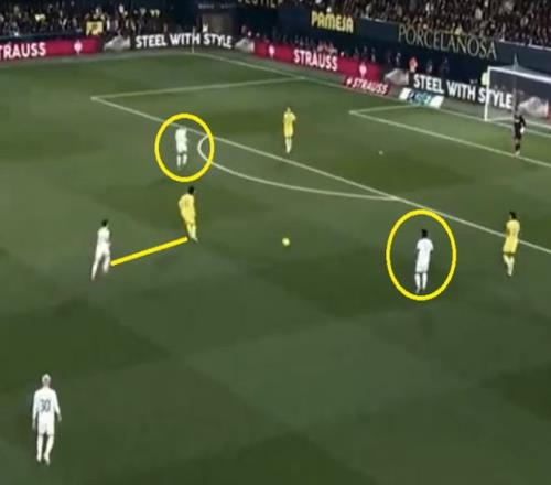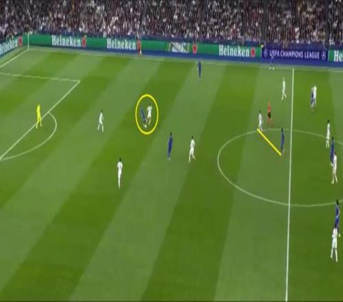皇馬進(jìn)攻時陣型變成1-4-1-4-1,球員在對方防線之間不停跑動換位,用橫向轉(zhuǎn)移和長傳球(這場有52次,比場均多7次)調(diào)動對手。
